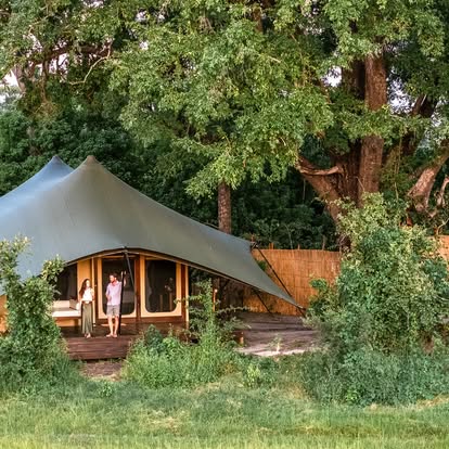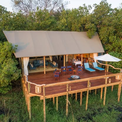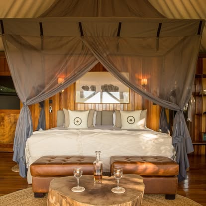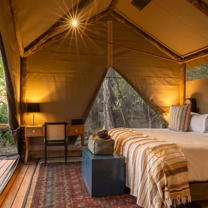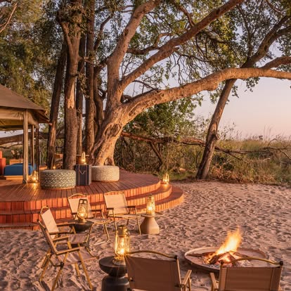 Fresh from a 2024 transformation, Kanana has been reimagined with a refined aesthetic that honors its pristine surroundings. Earthy tones mirror the riverine woodlands, while delicate eggshell accents pay homage to the Delta’s vast heronry. The camp’s redesign—awarded five stars by the Botswana Tourism Board—seamlessly blends contemporary comfort with the raw beauty of the bush.